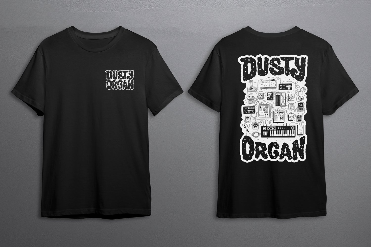 Limited Edition Anniversary Design featuring unique guitar pedals and odd features. Design on the back with a small logo on front